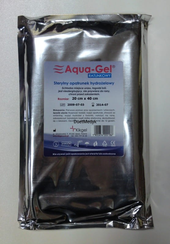 Opatrunek schadzajcy 20x40cm Aqua-Gel to opatrunek hydrożelowy, schładzaący na oparzenia. Pierwsza pomoc przy oparzeniach i otarciach.