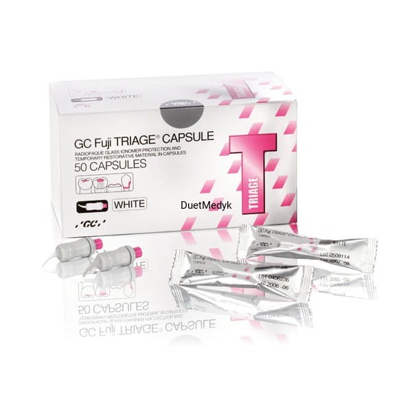 Fuji TRIAGE jest glasjonomerem o wysokim poziomie uwalniania fluoru stosowanym do wypełniania bruzd i ochrony powierzchni korzenia, a takze do zapobiegania nadwrazliwości oraz jako tymczasowe wypełnienie na przykład w trakcie leczenia endodontycznego.