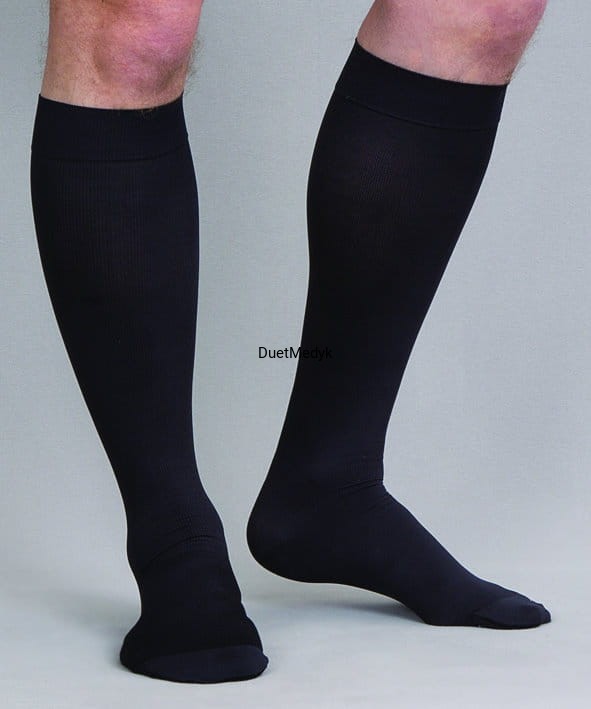 Skarpety medyczne przypominają wyglądem zwykłe skarpety. Mają prążkowaną strukturę, wydzieloną sekcję pięty oraz palców, co podnosi wygodę użytkowania.Szeroki pas przy wykończeniu skarpet zapobiega opuszczaniu się oraz powstawaniu punktowego ucisku w miejscu przylegania. Są bardzo przyjemne w dotyku i łatwe do zakładania.