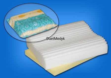 Poduszka wykonana jest z pianki o obniżonej miękkości, w górnej części prążkowana zapewniająca dobrą cyrkulację.