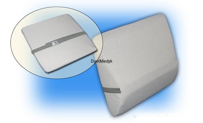 Poduszka podpiera profilaktycznie odcinek lędźwiowy kręgosłupa. Zaopatrzona jest w zapięcie umożliwiające zamocowanie na oparciu fotela w pracy, domu czy w podróży.