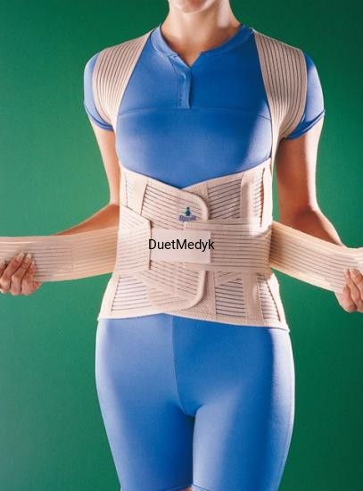 Służy do wzmocnienia kręgosłupa na odcinkach krzyżowym, lędźwiowym oraz piersiowym. Wszyte wzmocnienia, boczne dociągacze, a także pasy okołobarkowe zapewniają doskonałe usztywnienie. Elastyczny, oddychający materiał pozwala zachować naturalną ciepłotę ciała i poprawia ukrwienie. Zalecany przy różnorodnych schorzeniach kręgosłupa, np. dyskopatii wielopoziomowej, osteoporozie, zmianach zwyrodnieniowych, niestabilności kręgosłupa, kręgozmyku lędźwiowym, kompresyjnym złamaniu kregosłupa na tle osteoporotycznym, rwie kulszowej, zespołach bólowych odcinka lędźwiowo-krzyżowego, po zabiegach operacyjnych.